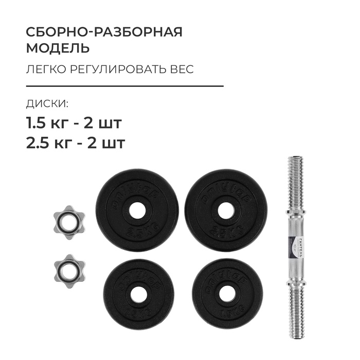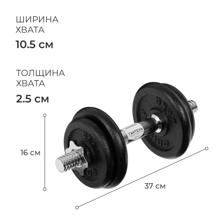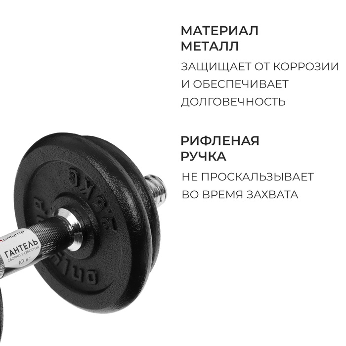 Гантель сборно-разборная ONLYTOP, 10 кг — Характеристики