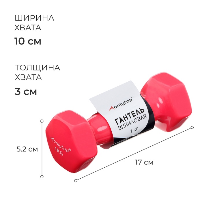 Гантель виниловая ONLYTOP, 1 кг, цвет фуксия — Характеристики