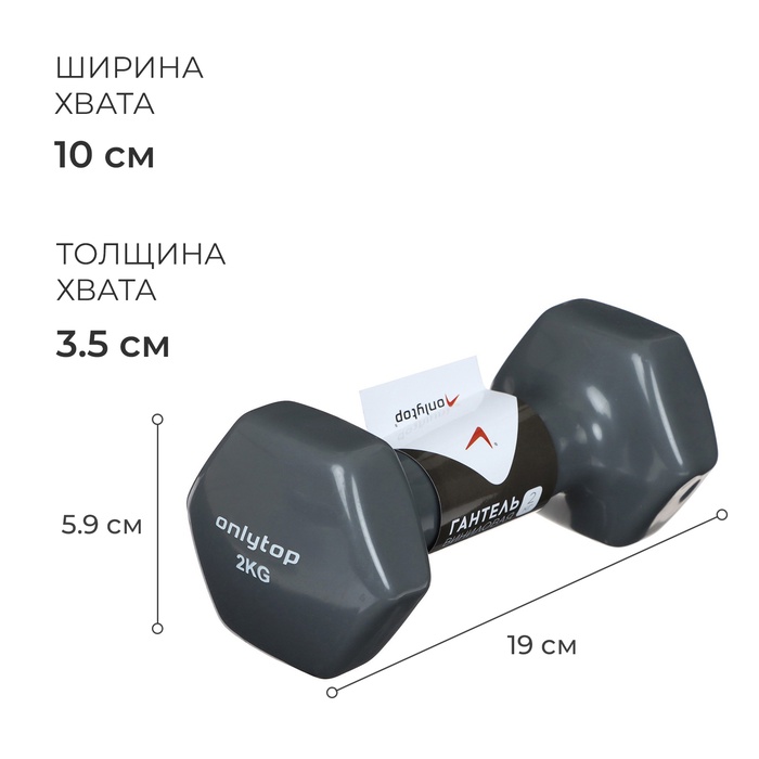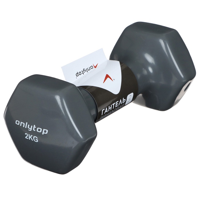 Гантель виниловая ONLYTOP, 2 кг, цвета МИКС — Характеристики