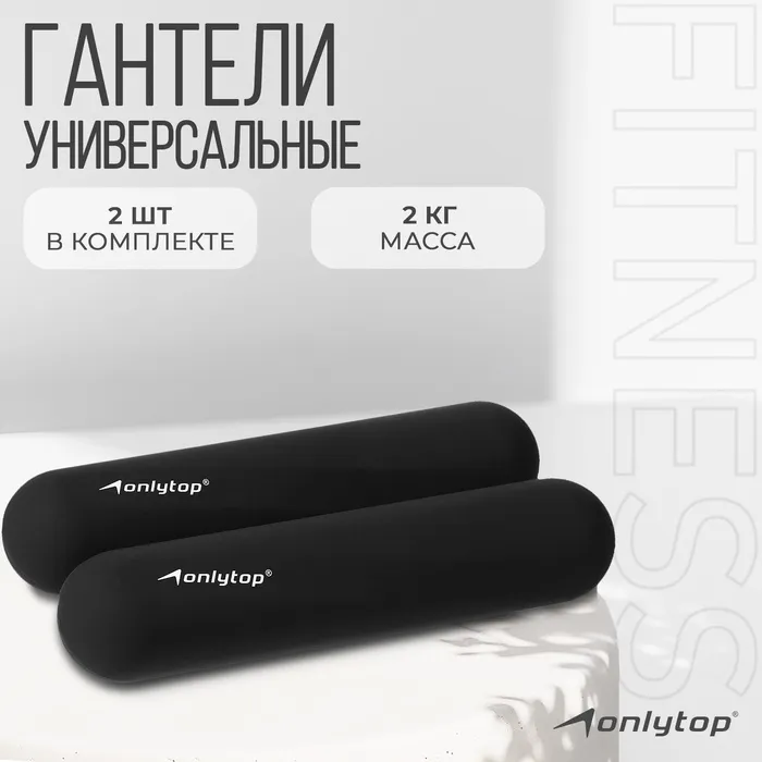 Гантели ONLYTOP для универсального отягощения, 2 шт., 2 кг, цвет чёрный