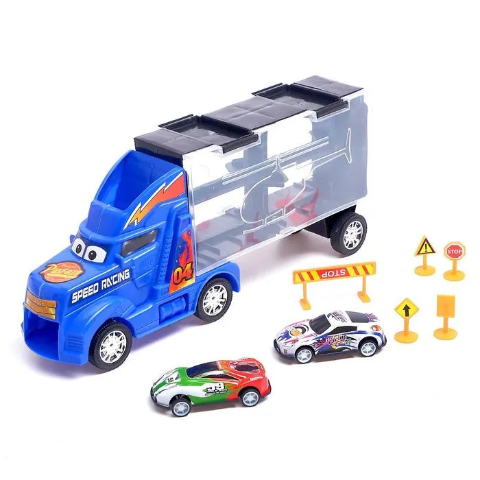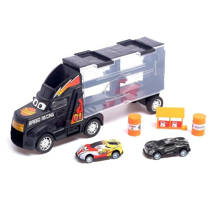 «Перевозчик» готов доставить спорткары для скоростных соревнований в любое время и в любое место. Загрузите машины в кузов автомобиля и начинайте игру. С яркими болидами сюжетам не будет предела! Ребёнок устроит настоящие гонки и будет состязаться с друзьями в быстрой и манёвренной езде.
