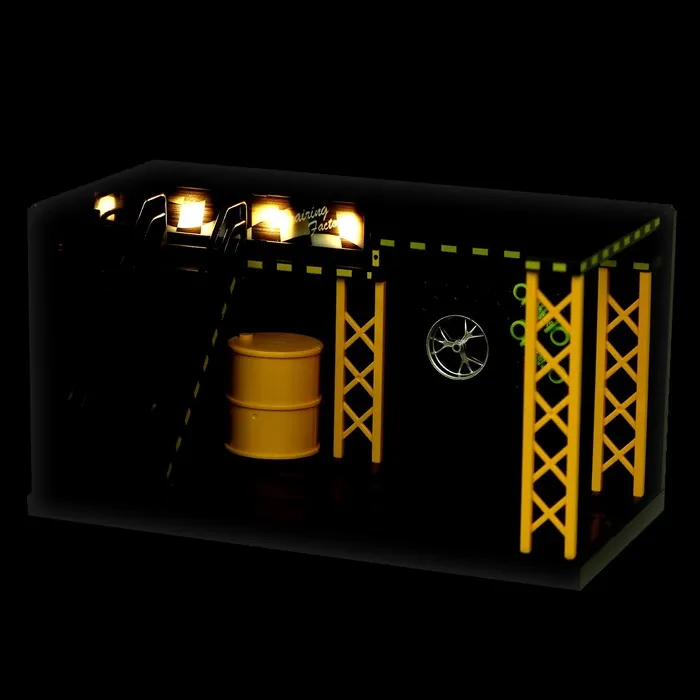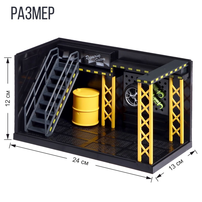 • Световые эффекты: встроенная подсветка работает от батареек. Гараж освещается мягким светом, создавая реалистичную атмосферу автосервиса или ночной парковки.