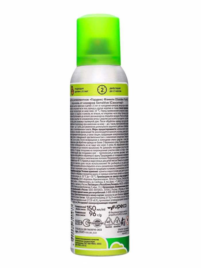 Gardex Family Аэрозоль от комаров Sensitive 150 мл (6) — Характеристики