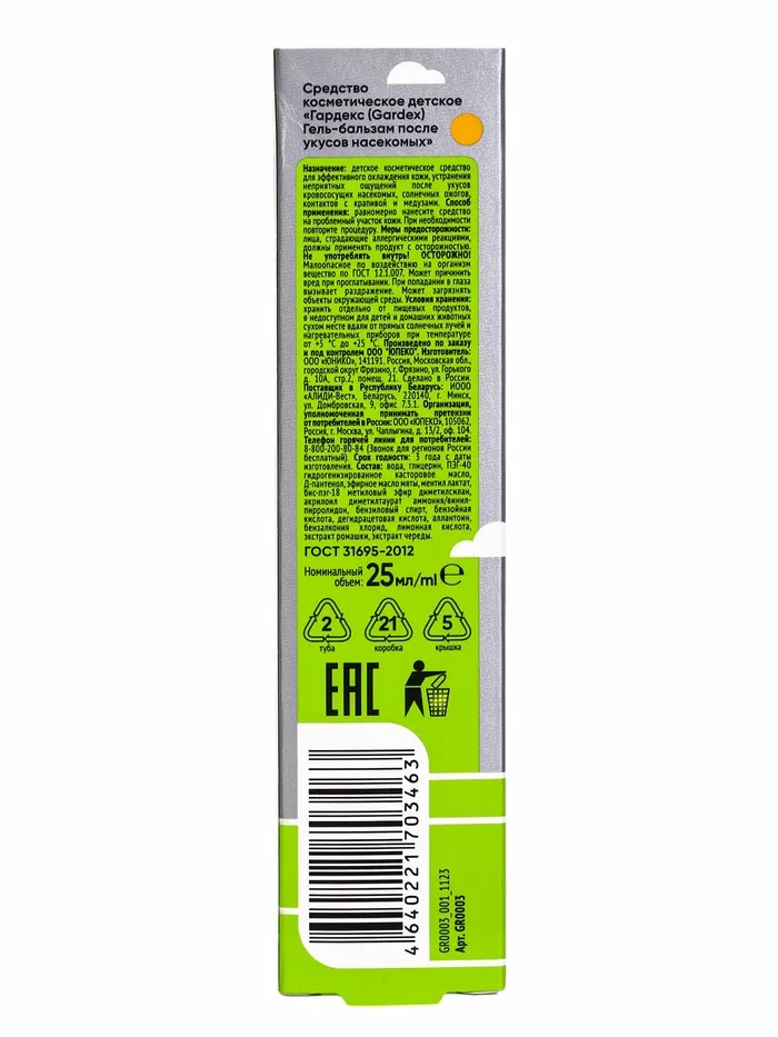 Gardex Гель-бальзам после укусов насекомых, 25 мл (24) — Характеристики