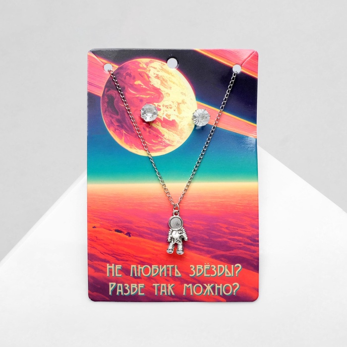 Гарнитур 2 предмета: кулон, серьги «Космонавт», цвет чернёное серебро, 41 см — Характеристики