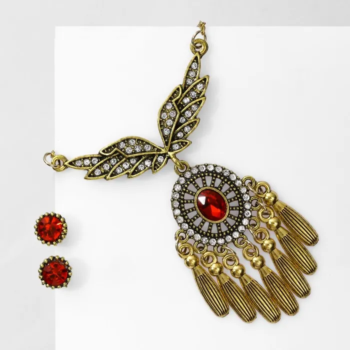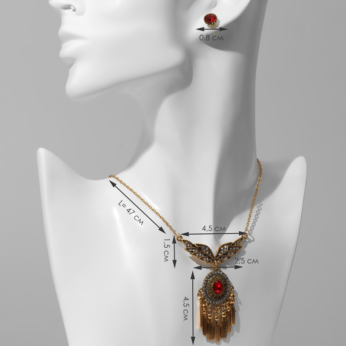 Гарнитур 2 предмета: кулон, серьги «Крылья», цвет бело-красный в чернёном золоте, 48 см — Характеристики