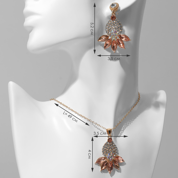 Гарнитур 2 предмета: кулон, серьги «Лотос», цвет бело-персиковый в золоте, 48 см — Характеристики