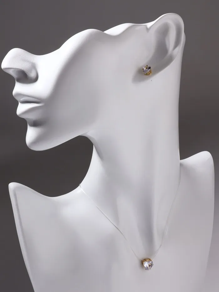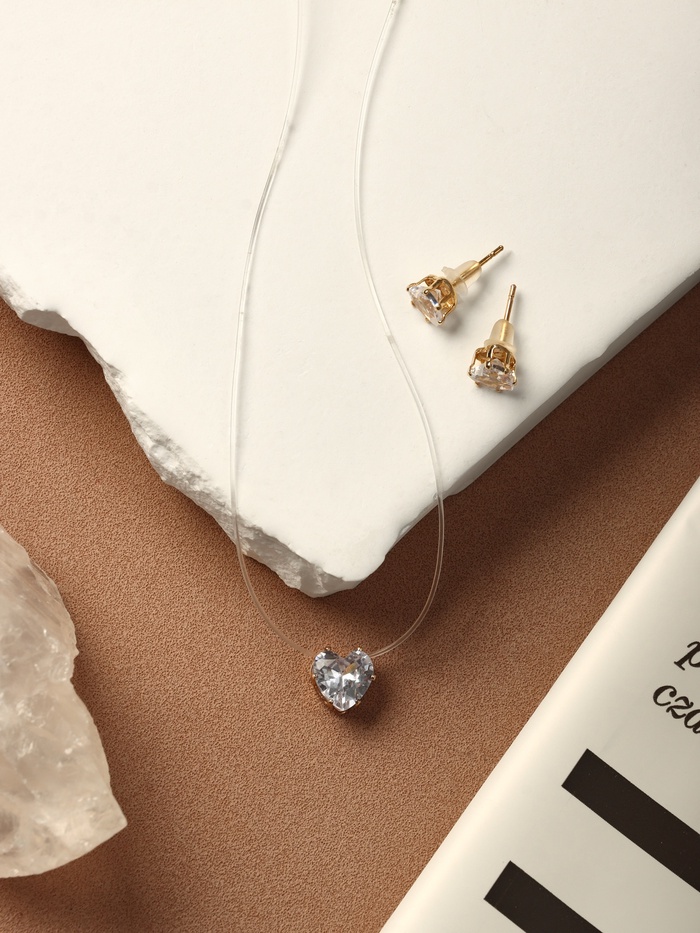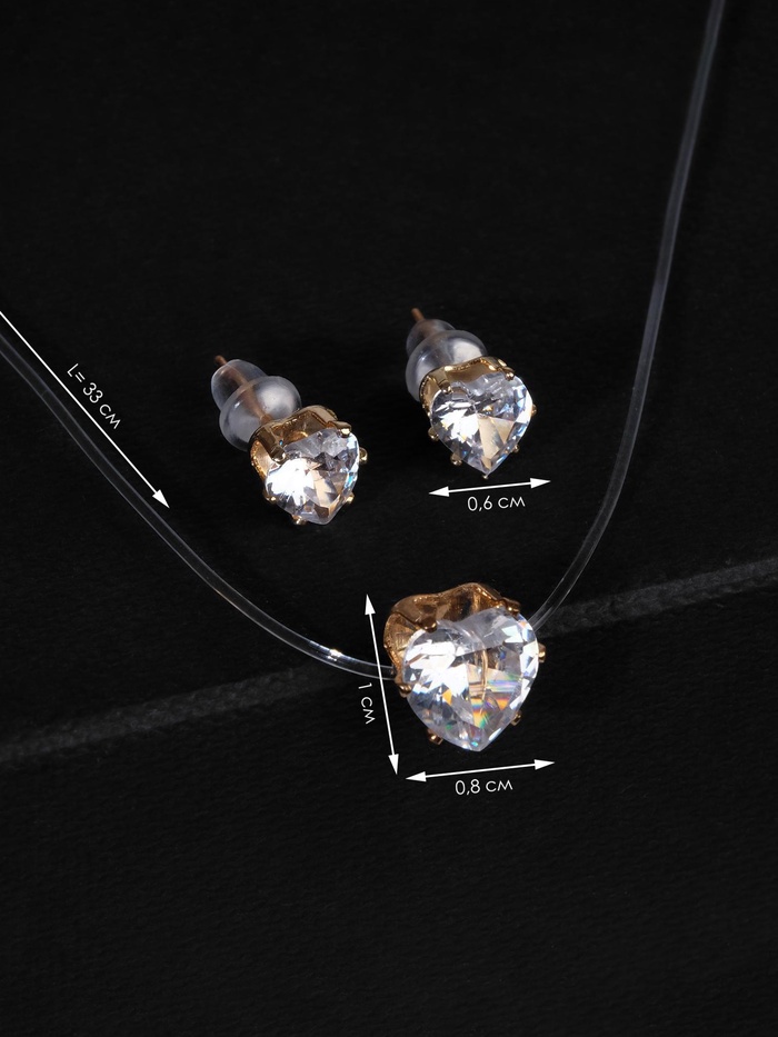 Гарнитур 2 предмета: кулон, серьги «На леске» сердечко, цвет белый в золоте, 30 см — Характеристики