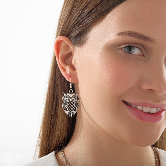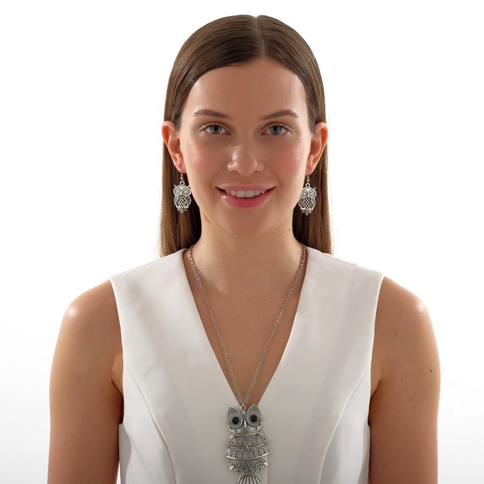 Гарнитур 2 предмета: кулон, серьги «Сова», цвет чернёное серебро, 60 см — Характеристики