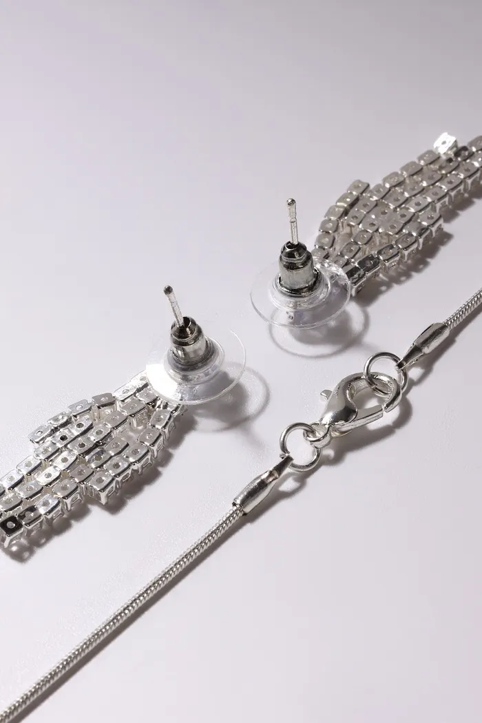 Гарнитур 2 предмета: кулон, серьги «Водопад» квадрат, цвет белый в серебре — Характеристики