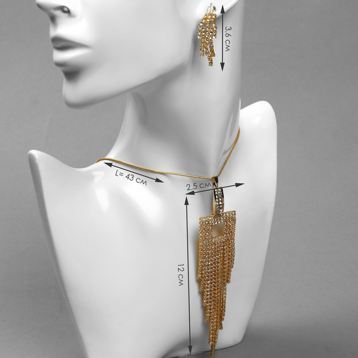 Гарнитур 2 предмета: кулон, серьги «Водопад» квадрат, цвет белый в золоте — Характеристики
