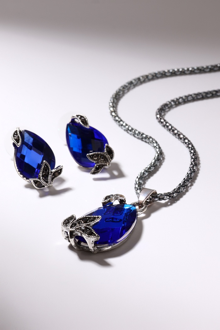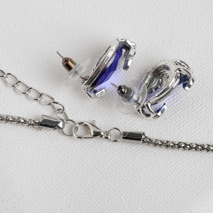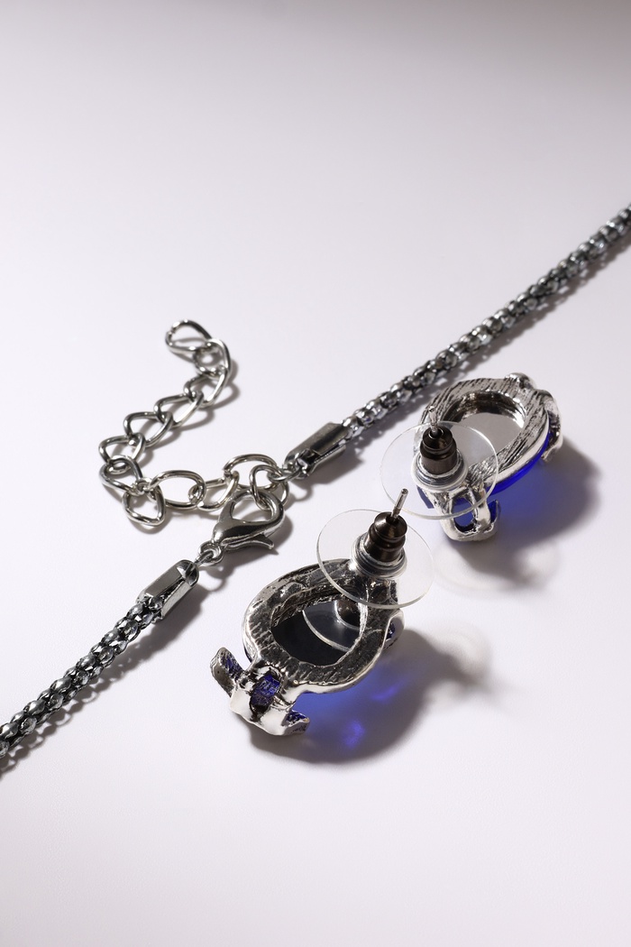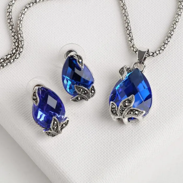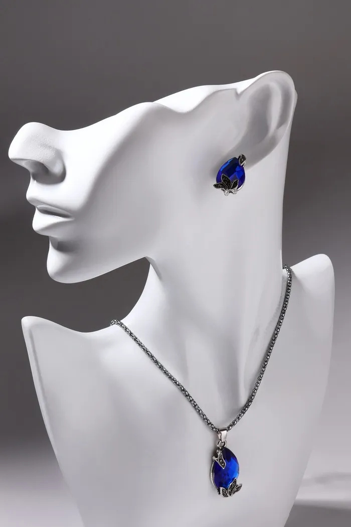 Гарнитур 2 предмета: кулон, серьги «Жаклин» листок, цвет синий в чернёном серебре, 45 см — Характеристики