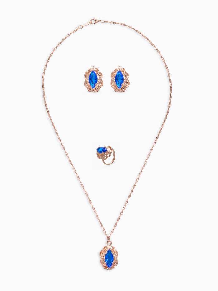 Гарнитур из трёх предметов: серьги, кулон и кольцо — это уникальный набор, который можно носить как вместе, создавая гармоничный образ, так и по отдельности, добавляя акцент в каждую деталь. Кольцо выполнено в безразмерном формате, что делает его универсальным и подходящим для любого женского пальца. Этот комплект сочетает в себе элегантность и практичность, идеально дополняя как повседневный стиль, так и вечерние наряды.