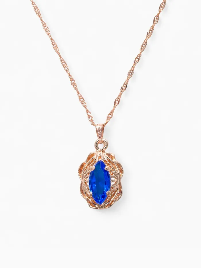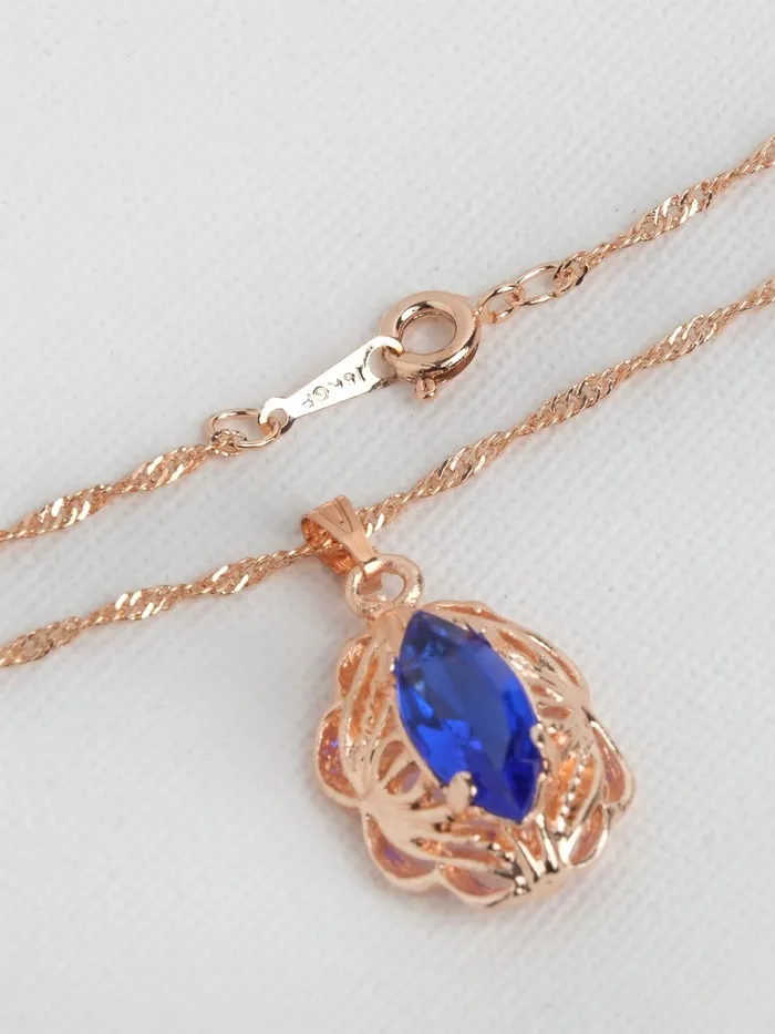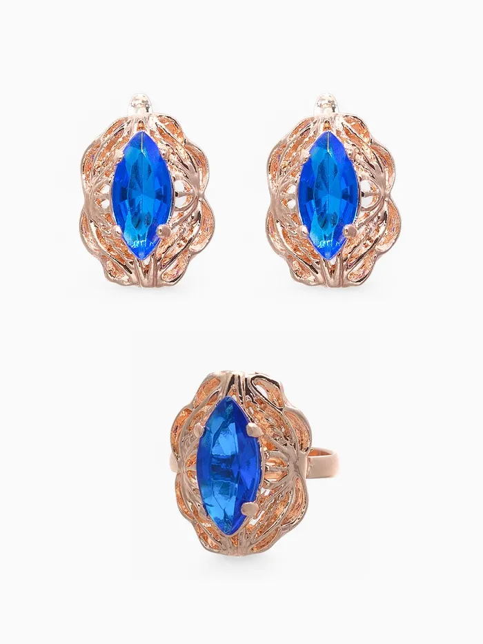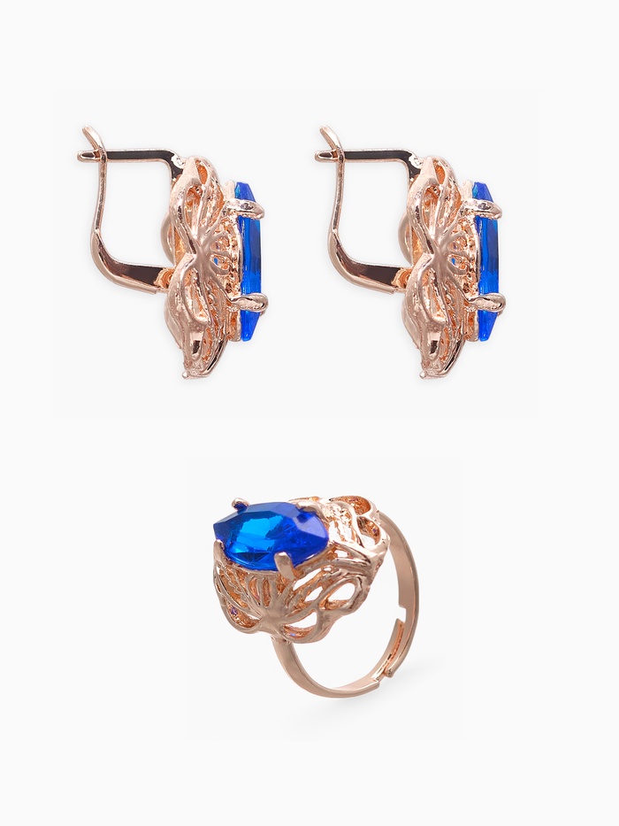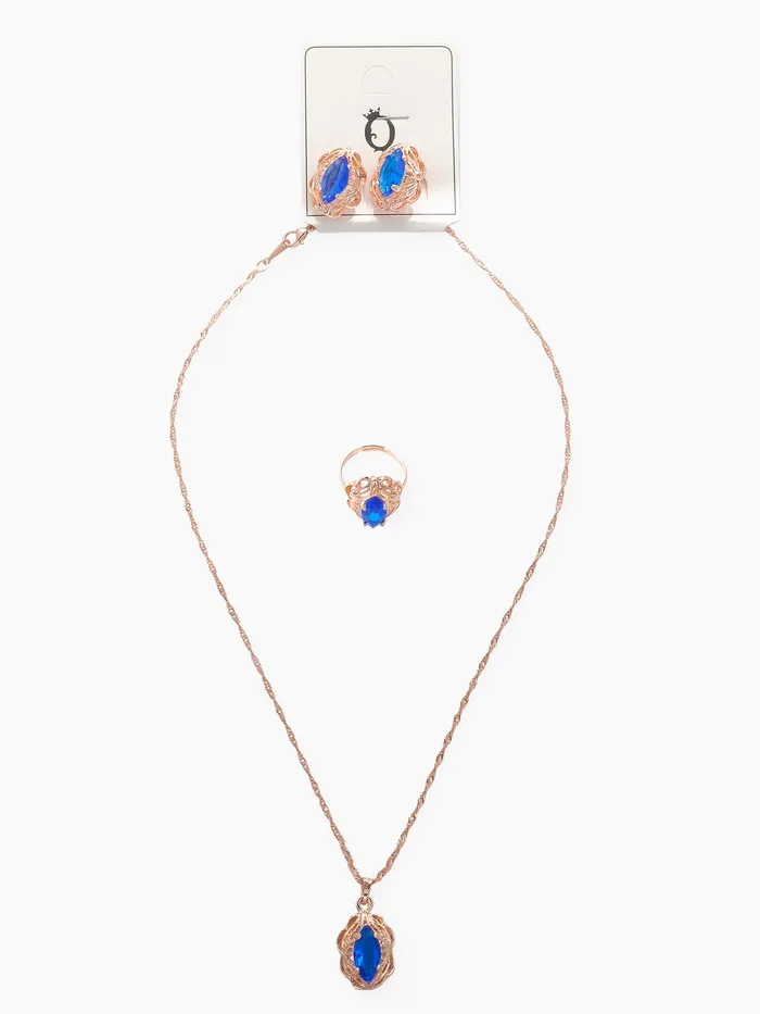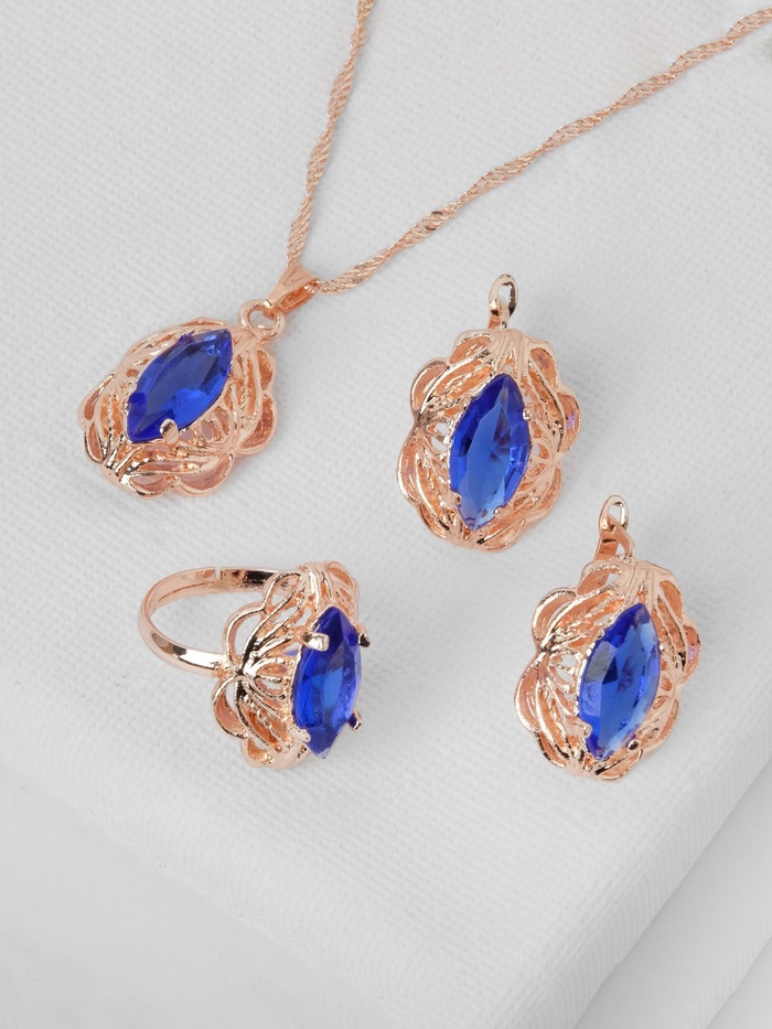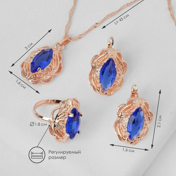 Гарнитур 3 предмета: серьги, кулон, кольцо безразмерное «Эдель» ажурный овал, цвет син в золоте, 45 см — Характеристики