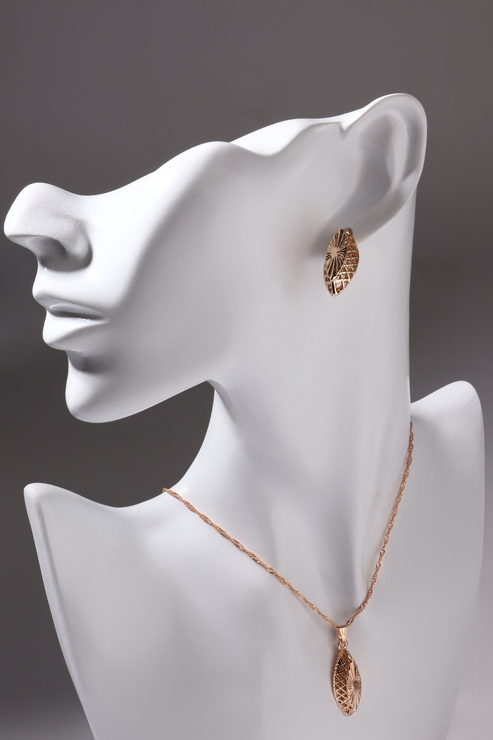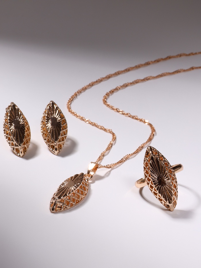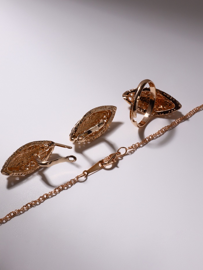 Гарнитур 3 предмета: серьги, кулон, кольцо безразмерное «Эдель» эллипс резной, цвет золото, 45 см — Характеристики