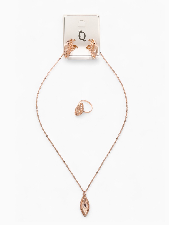 Гарнитур из трёх предметов: серьги, кулон и кольцо — это уникальный набор, который можно носить как вместе, создавая гармоничный образ, так и по отдельности, добавляя акцент в каждую деталь. Кольцо выполнено в безразмерном формате, что делает его универсальным и подходящим для любого женского пальца. Этот комплект сочетает в себе элегантность и практичность, идеально дополняя как повседневный стиль, так и вечерние наряды.