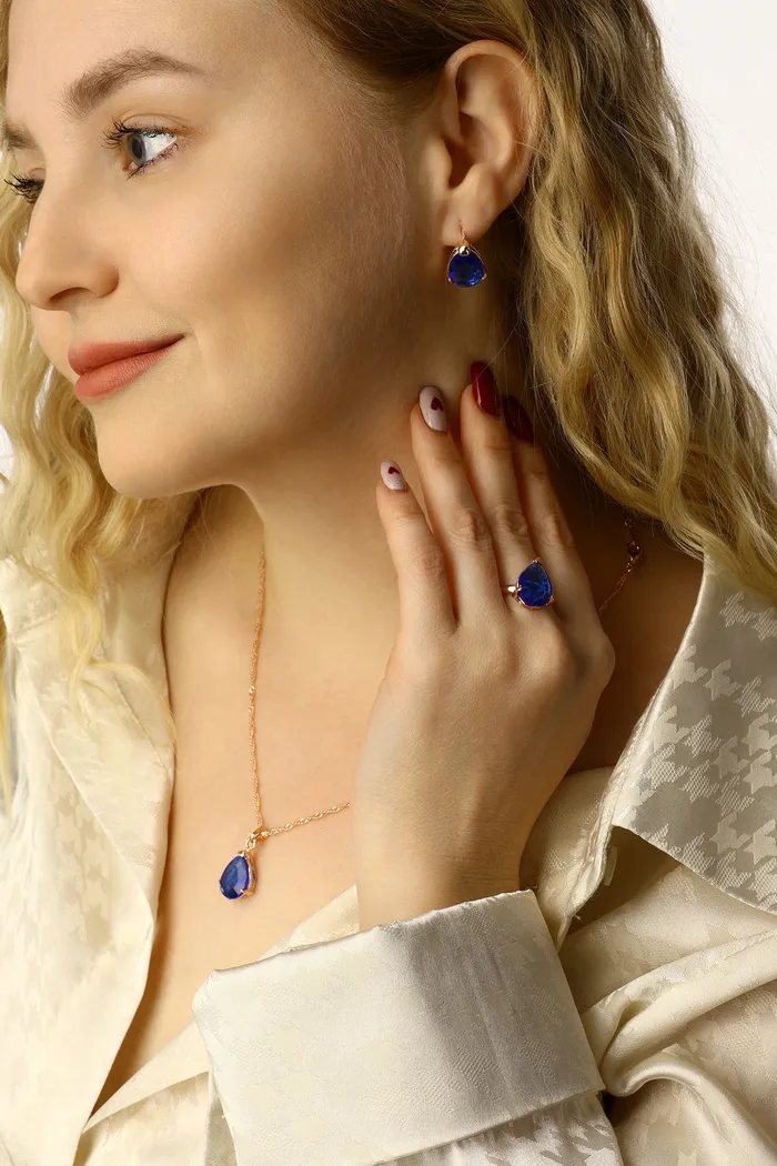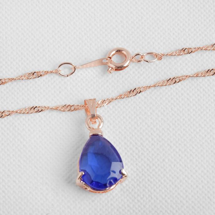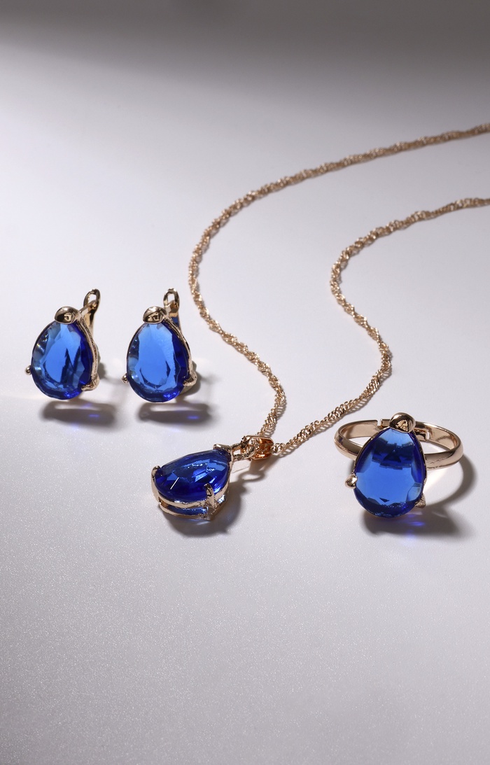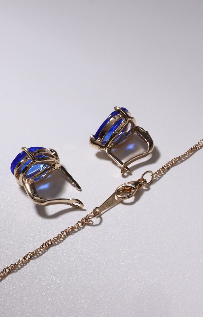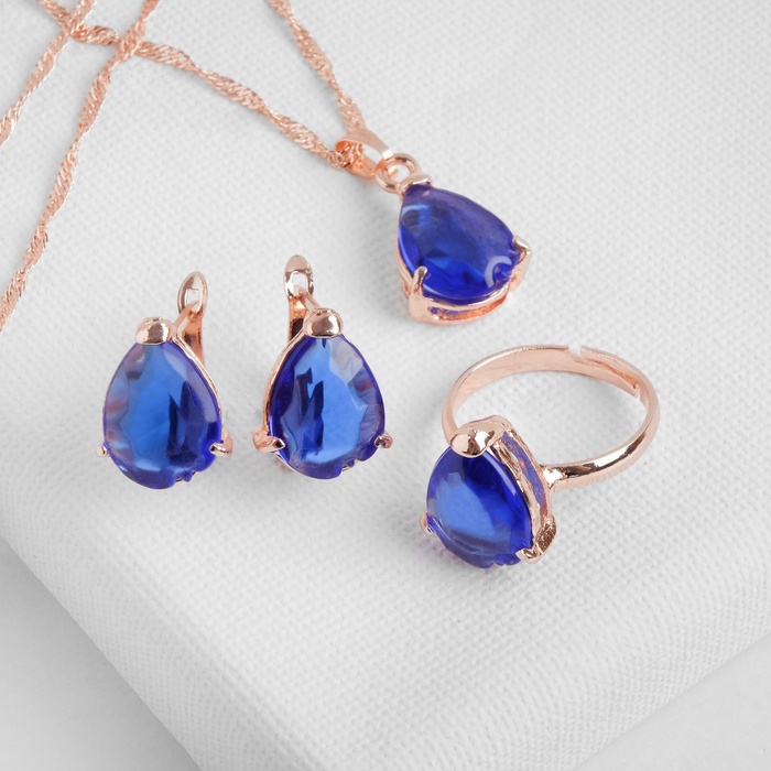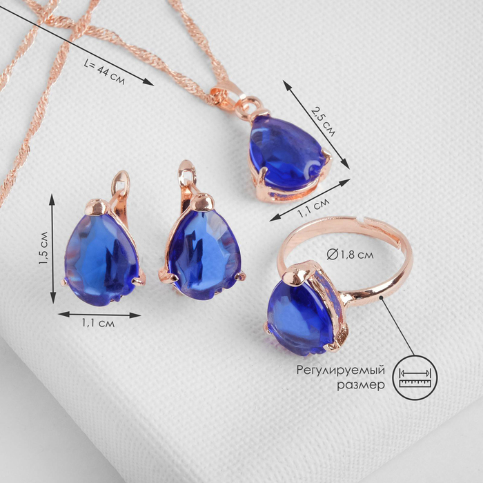 Гарнитур 3 предмета: серьги, кулон, кольцо безразмерное «Эдель» капля, цвет синий в золоте, 45 см — Характеристики