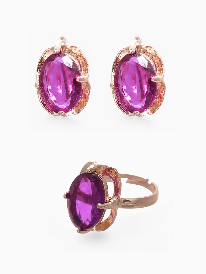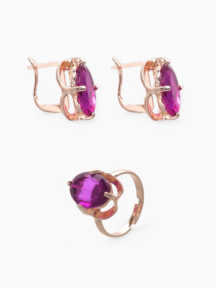 Гарнитур 3 предмета: серьги, кулон, кольцо безразмерное «Эдель» классик, цвет фиол в золоте, 45 см — Характеристики