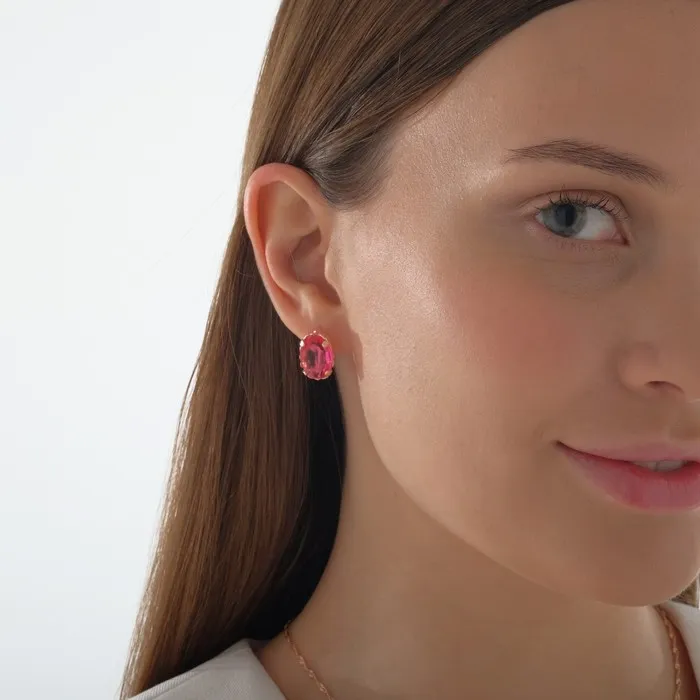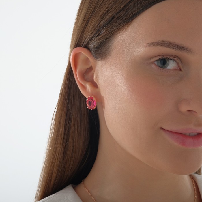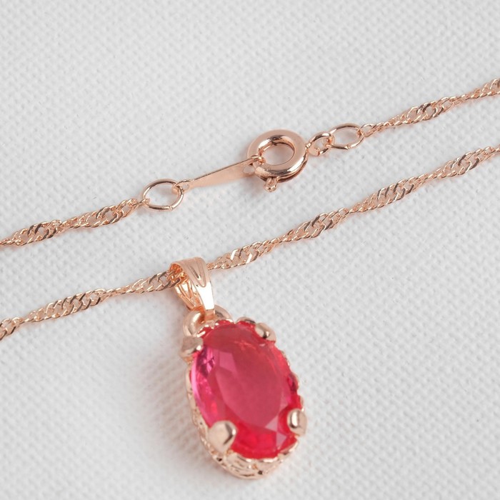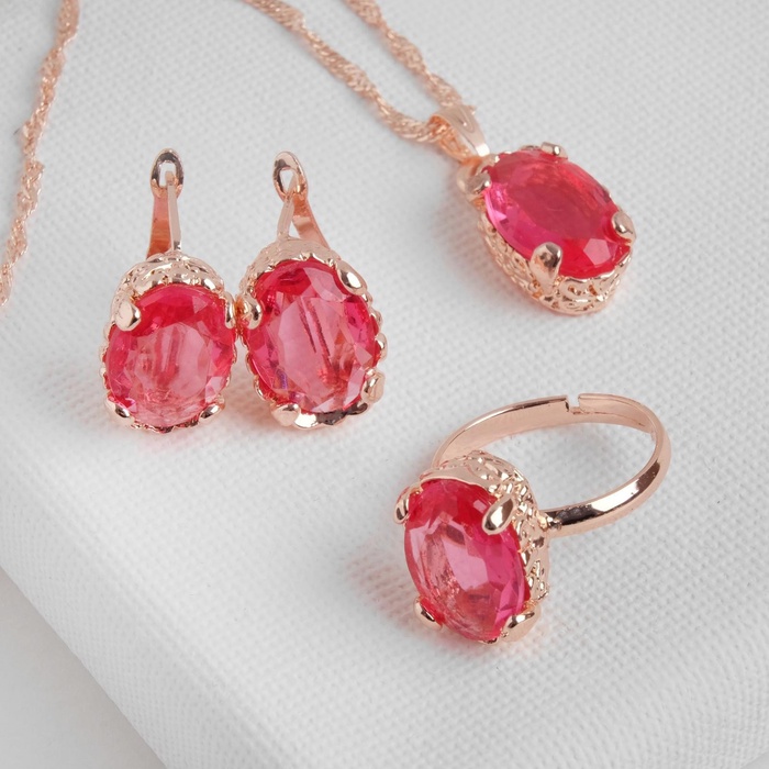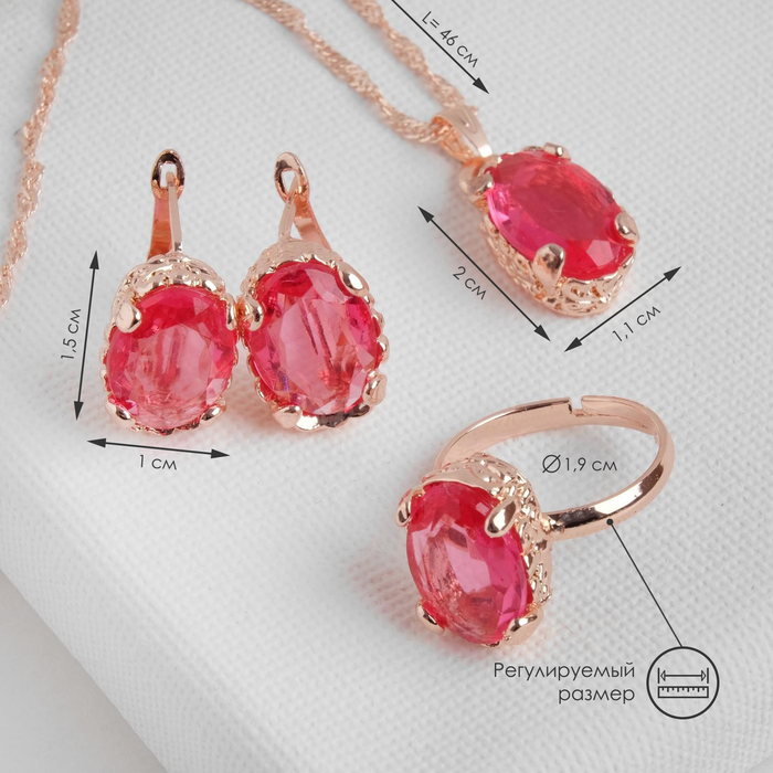 Гарнитур 3 предмета: серьги, кулон, кольцо безразмерное «Эдель» овал крупный, цвет розовый в золоте, 45 см — Характеристики