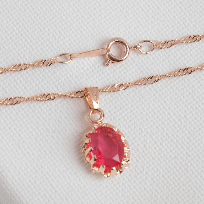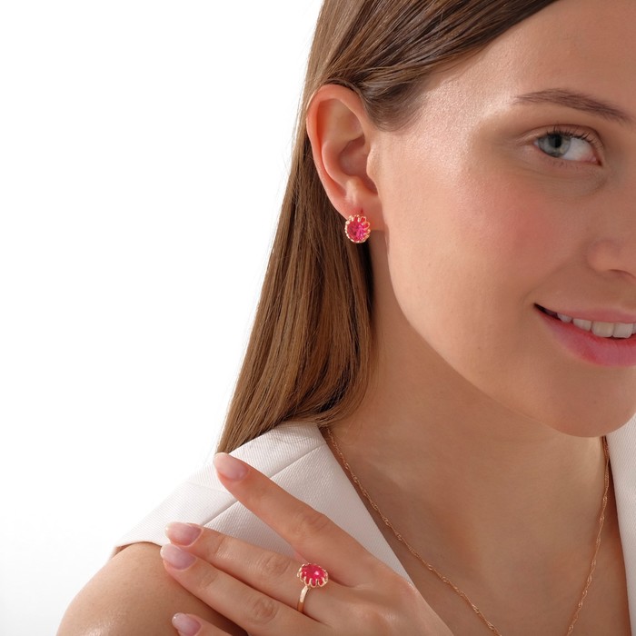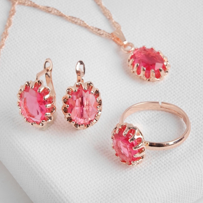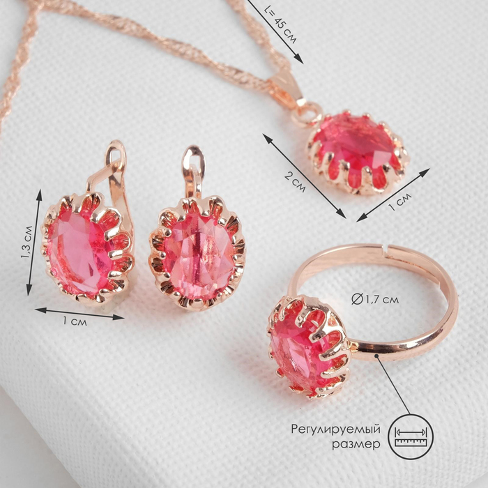 Гарнитур 3 предмета: серьги, кулон, кольцо безразмерное «Эдель» овал, цвет ярко-розовый в золоте, 45 см — Характеристики
