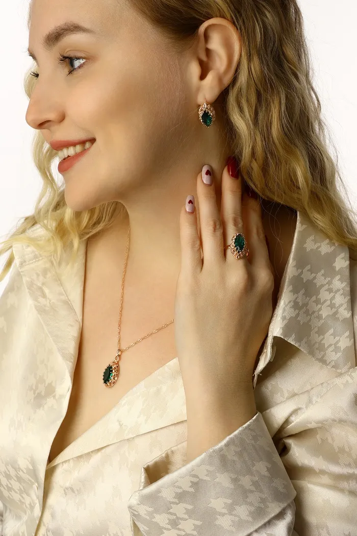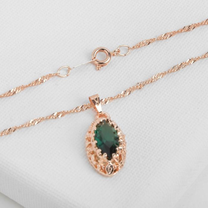 Гарнитур 3 предмета: серьги, кулон, кольцо безразмерное «Эдель» овал вытянутый, цвет зелёный в золоте, 45 см — Характеристики