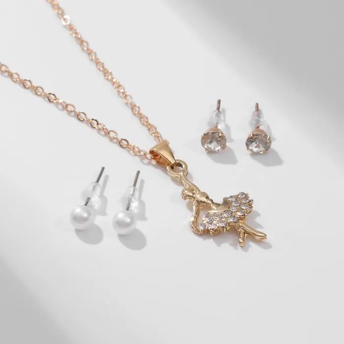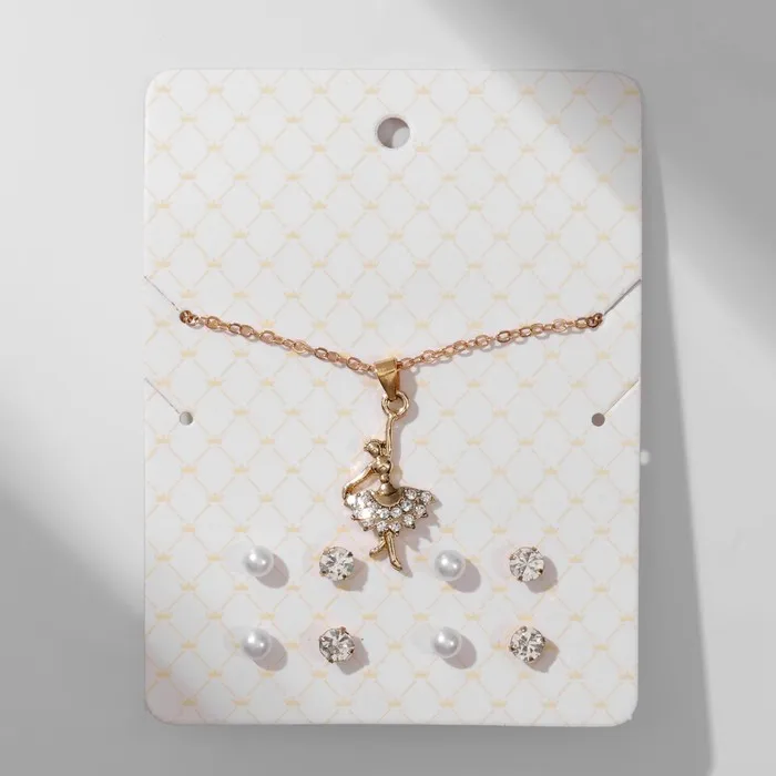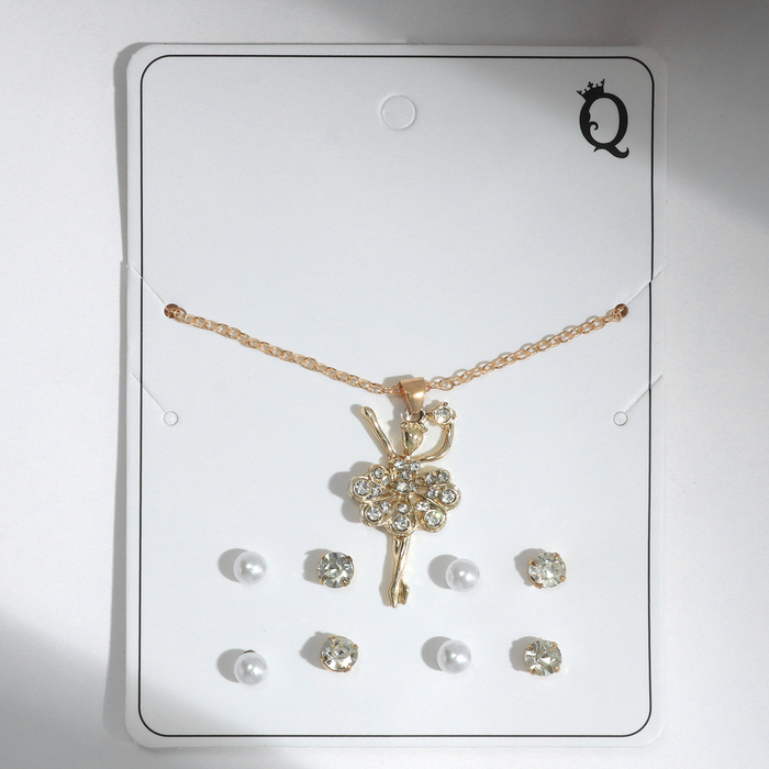 Гарнитур 5 предметов: 4 пары пусет, кулон «Балерина», цвет белый в золоте, 43 см — Характеристики