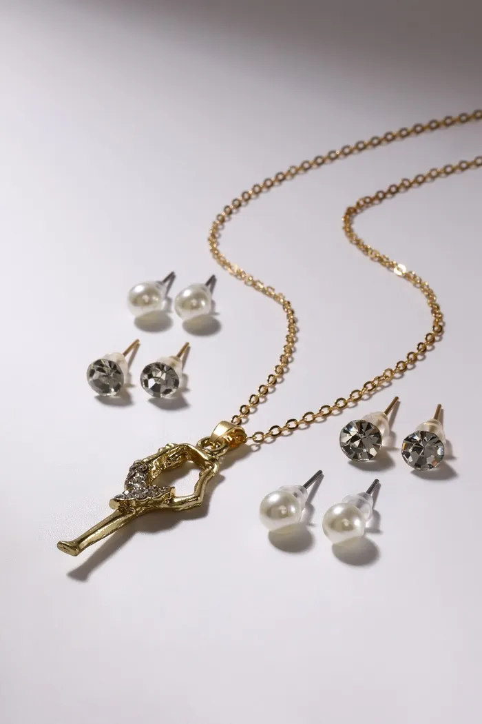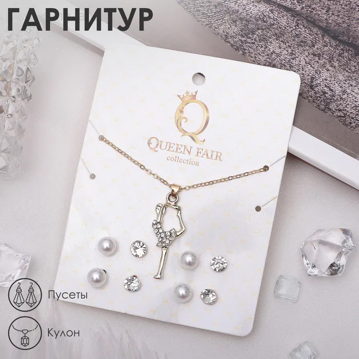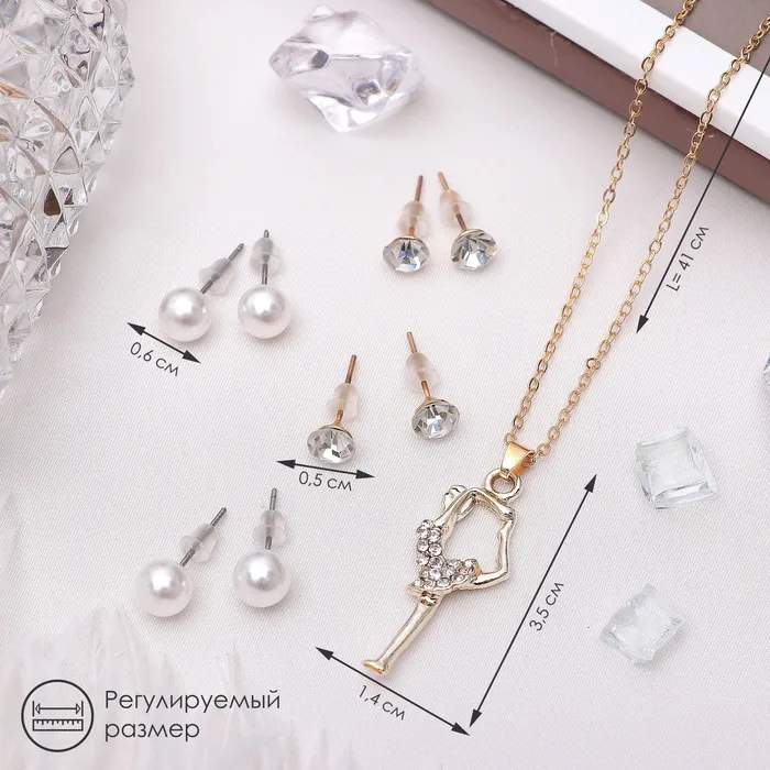Гарнитур 5 предметов: 4 пары пусет, кулон «Гимнастка», цвет белый в золоте, 40 см — Характеристики
