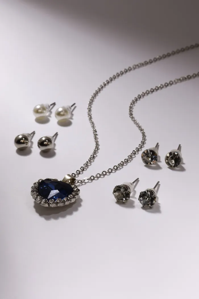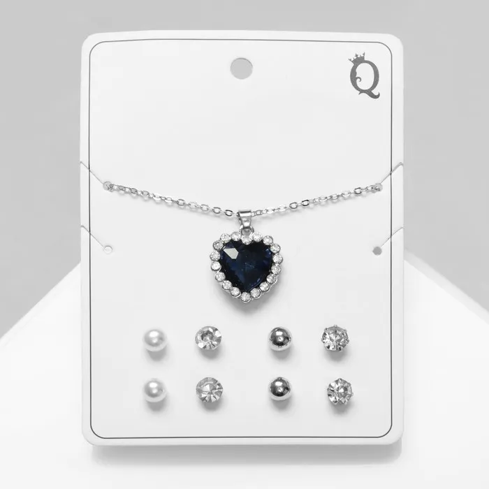 Гарнитур 5 предметов: 4 пары пусет, кулон «Сердечко», цвет бело-синий в серебре, 40 см — Характеристики