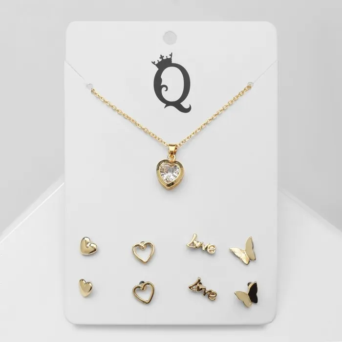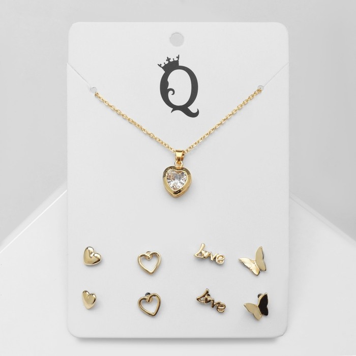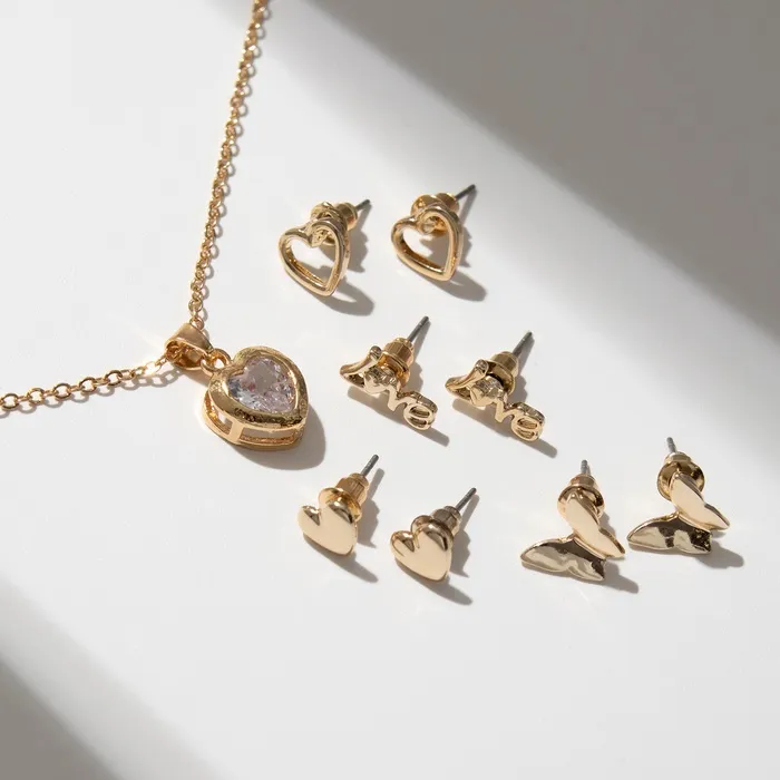 Гарнитур 5 предметов: серьги (4 пары), кулон «Минимал» сердечко, цвет золото, 40 см — Характеристики