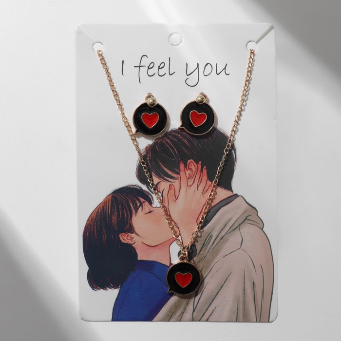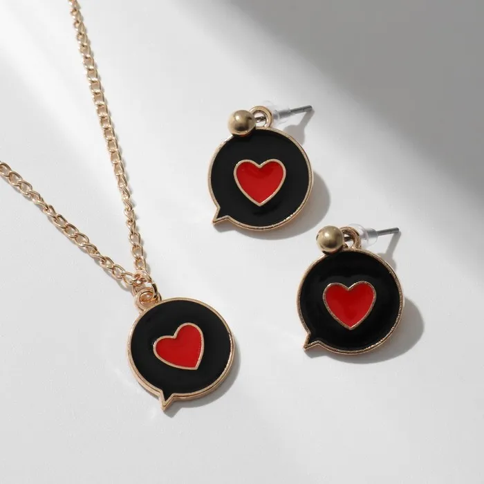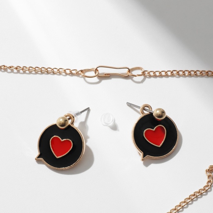 Гарнитура 2 предмета: серьги, кулон «Сердце» мечта, цвет красно-чёрный в золоте, 42 см — Характеристики