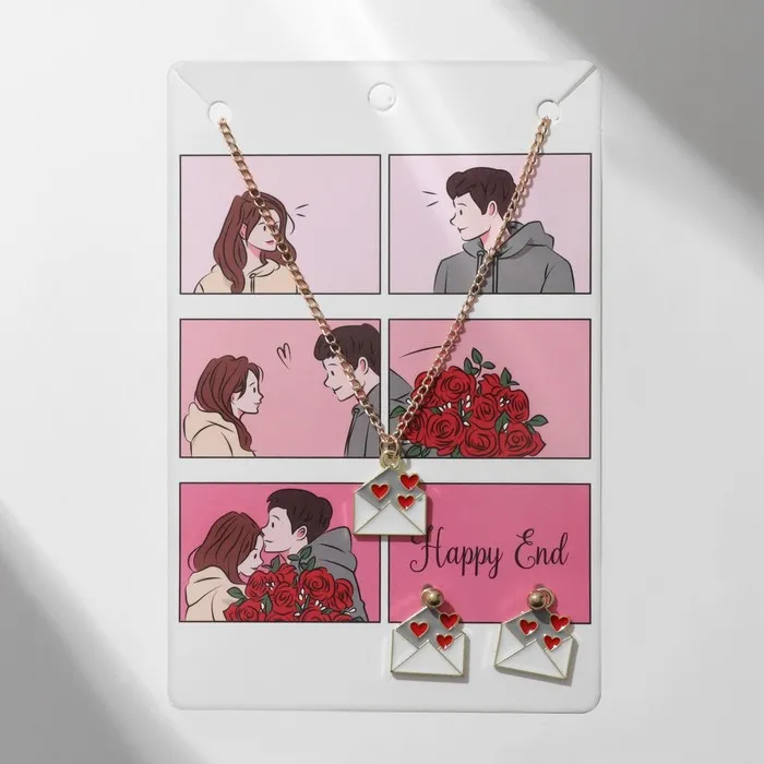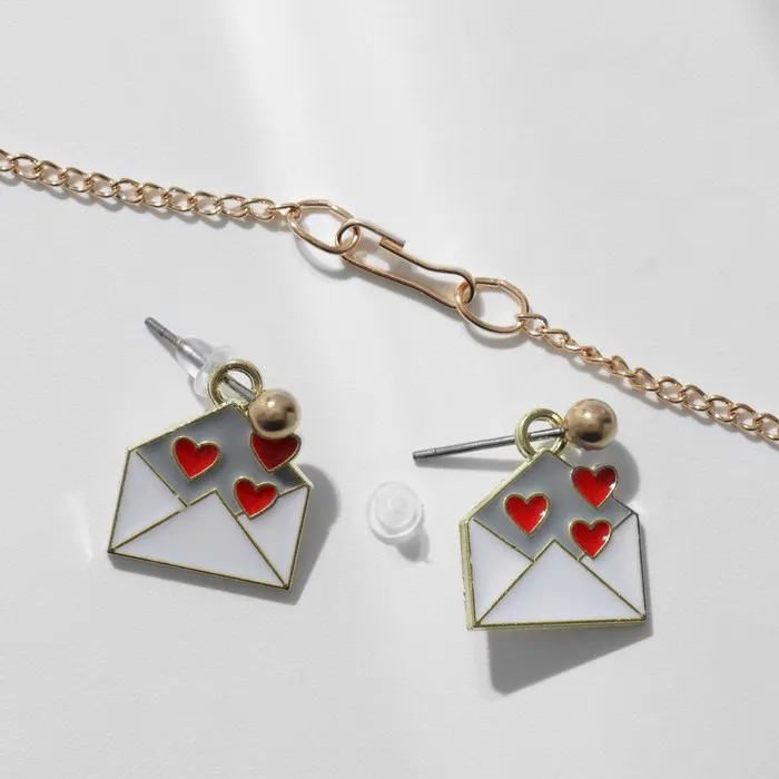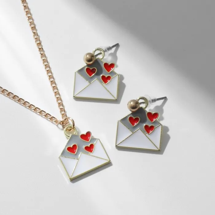 Гарнитура 2 предмета: серьги, кулон «Сердце» послание, цвет красно-белый в золоте, 42 см — Характеристики