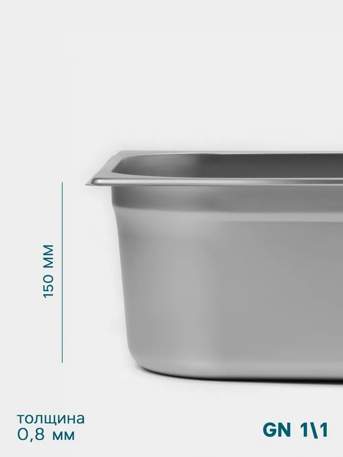 Гастроёмкость GN 1/1 Hanna Knövell, 150 мм, 530×325×150 мм, толщина 0.8 мм, нержавеющая сталь — Характеристики