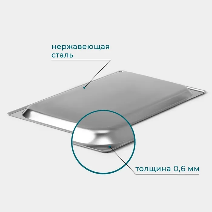 Гастроёмкость из нержавеющей стали — незаменимый помощник на профессиональной кухне. Она идеально подходит для заморозки, хранения и приготовления продуктов. Гладкая внутренняя поверхность предотвращает прилипание остатков пищи, а материал устойчив к коррозии. Размеры ёмкости составляют 53 см в длину, 32,5 см в ширину и 2 см в высоту, а толщина стенок равна 0,6 мм. Эта гастроёмкость станет вашим верным спутником в мире кулинарии и облегчит процесс готовки.