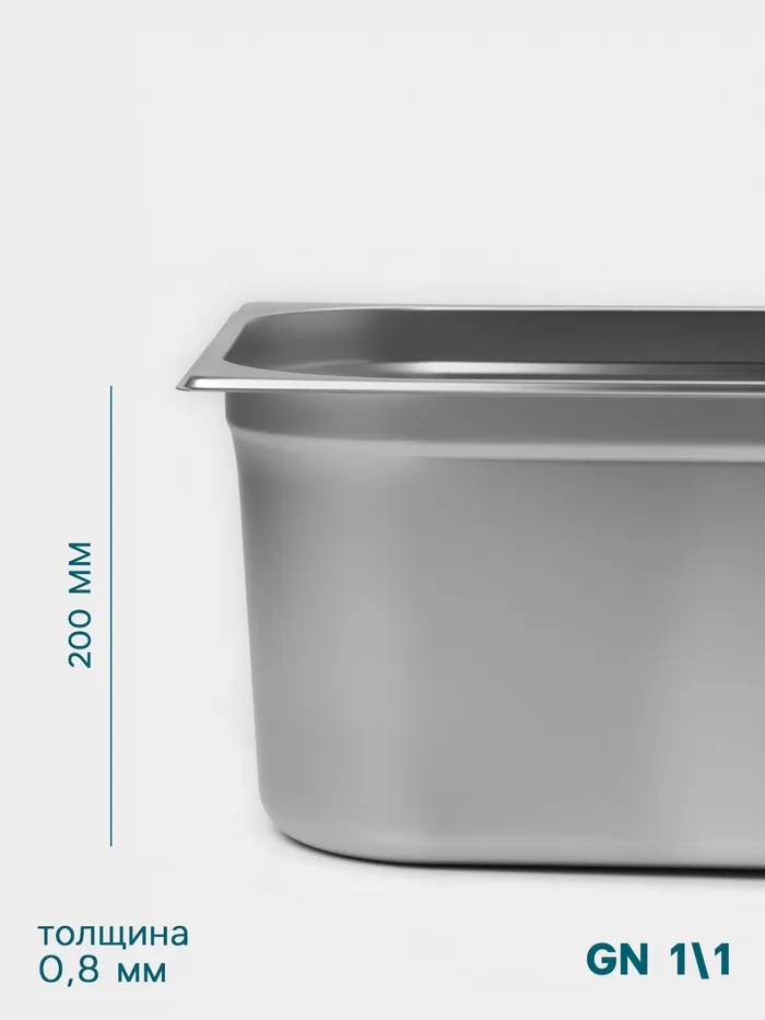 Гастроёмкость GN 1/1 Hanna Knövell, 200 мм, 530×325×200 мм, толщина 0.8 мм, нержавеющая сталь — Характеристики