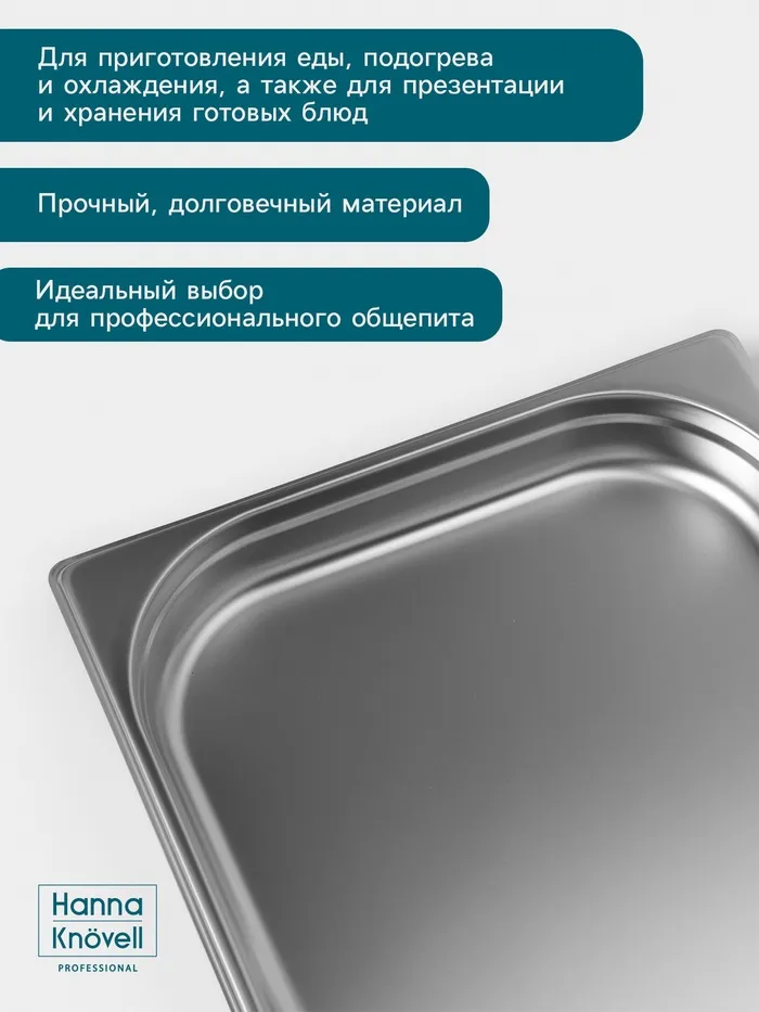 Гастроёмкость GN 1/1 Hanna Knövell, 40 мм, 530×325×40 мм, толщина 0.8 мм, нержавеющая сталь — Характеристики