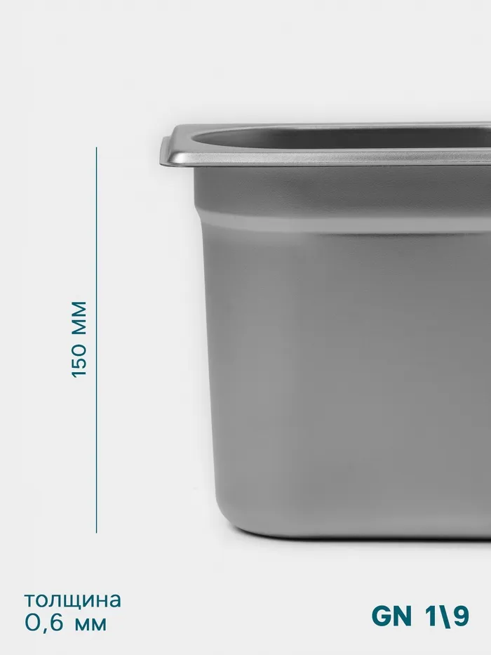 Гастроёмкость GN 1/9 Hanna Knövell, 150 мм, 176×108×150 мм, толщина 0.8 мм, нержавеющая сталь — Характеристики