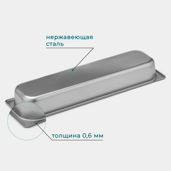 Гастроёмкость GN 2/4 Hanna Knövell, 65 мм, 53×16.4×6.5 см, толщина 0.6 мм, нержавеющая сталь — Характеристики