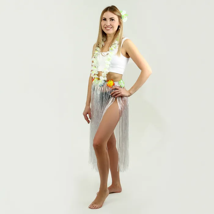 Гавайский набор «Тропики» — идеальный выбор для тематических вечеринок и карнавалов. В комплект входят юбка, зажим и венок, выполненные в белом цвете, что придаст вашему образу свежести и экзотики. Этот набор добавит яркости и веселья вашему мероприятию, создавая атмосферу тропического рая.