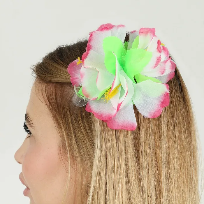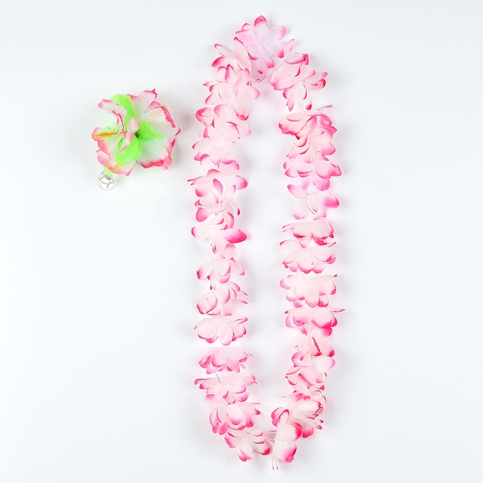 Гавайский набор: зажим с цветком фуксия, ожерелье