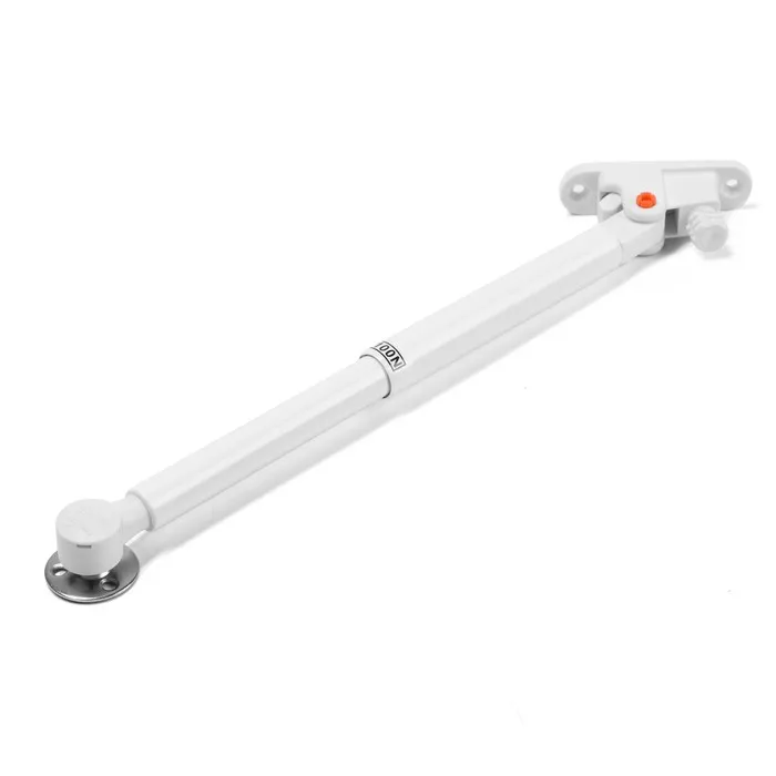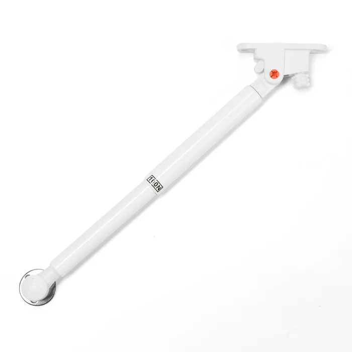 Газлифт белого цвета с доводчиком для плавного открывания и закрывания. Специальная защита увеличивает срок службы устройства.