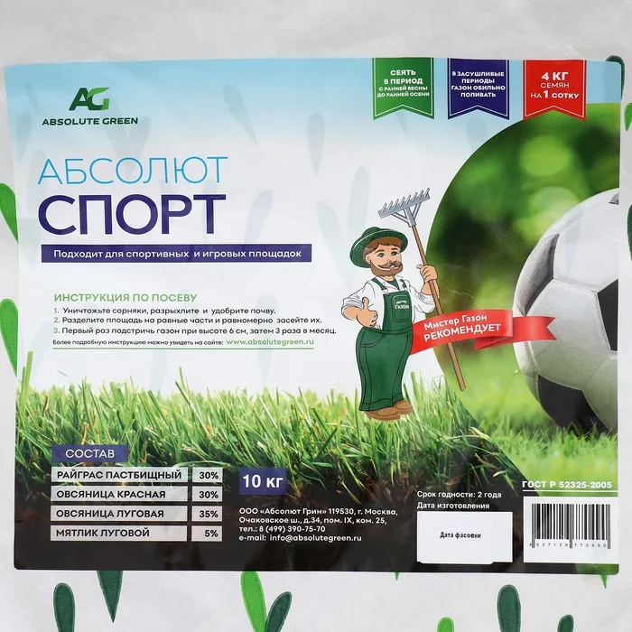 Газонная травосмесь Абсолют Спорт, 10 кг — Характеристики
