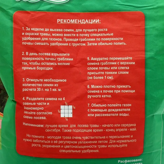 Состав: мятлик луговой – 15%, овсяница красная – 20%, овсяница луговая – 25%, тимофеевка луговая – 20%, райграс пастбищный 20%