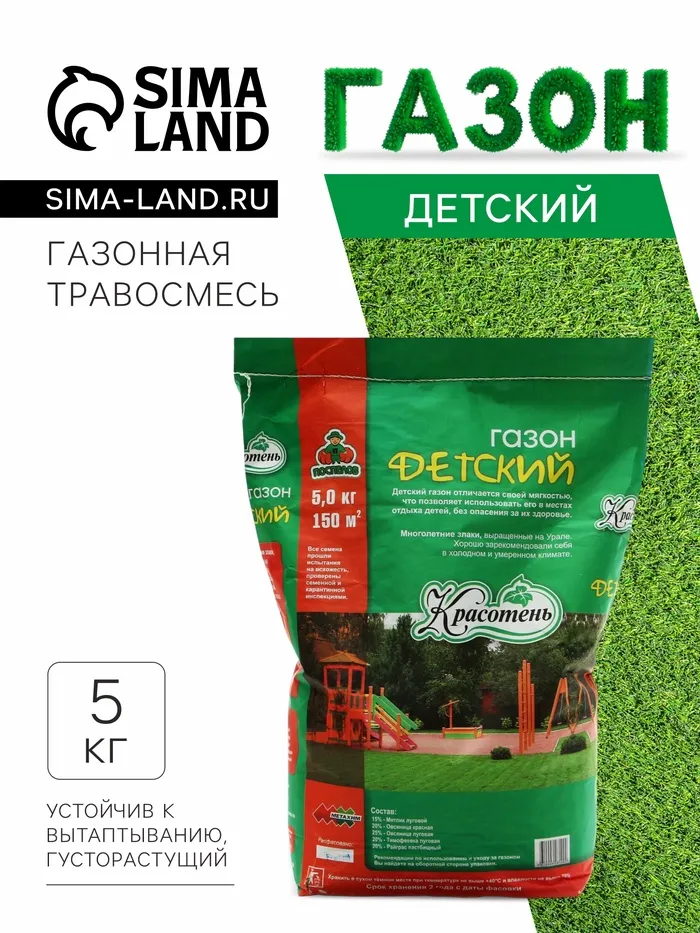 Трава устойчива к вытаптыванию и медленно отрастает после скашивания. Благодаря этому газон не потребует специального ухода.