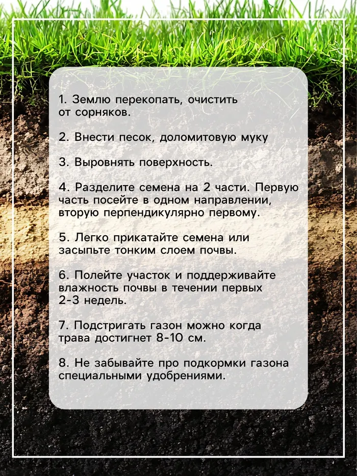 - Для нормального роста, укоренения и цветонасыщенности травы используйте специальные удобрения для газонов и цветников.