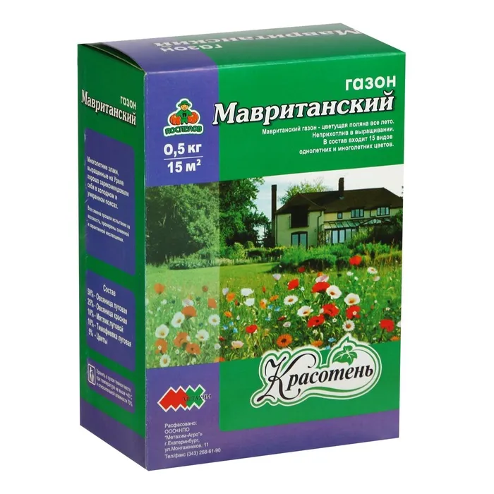 Мавританский газон — Цветущий газон, неприхотлив в выращивании, в составе 15 видов однолетних и многолетних цветов.