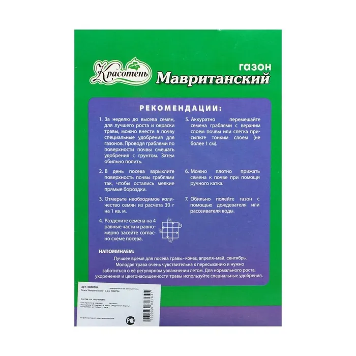 Газонная травосмесь «Мавританский » 0.5 кг — Характеристики