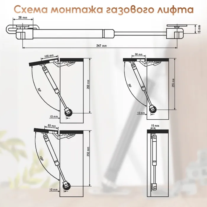 Газовый лифт ТУНДРА GL0100BL, 100N, черный — Характеристики