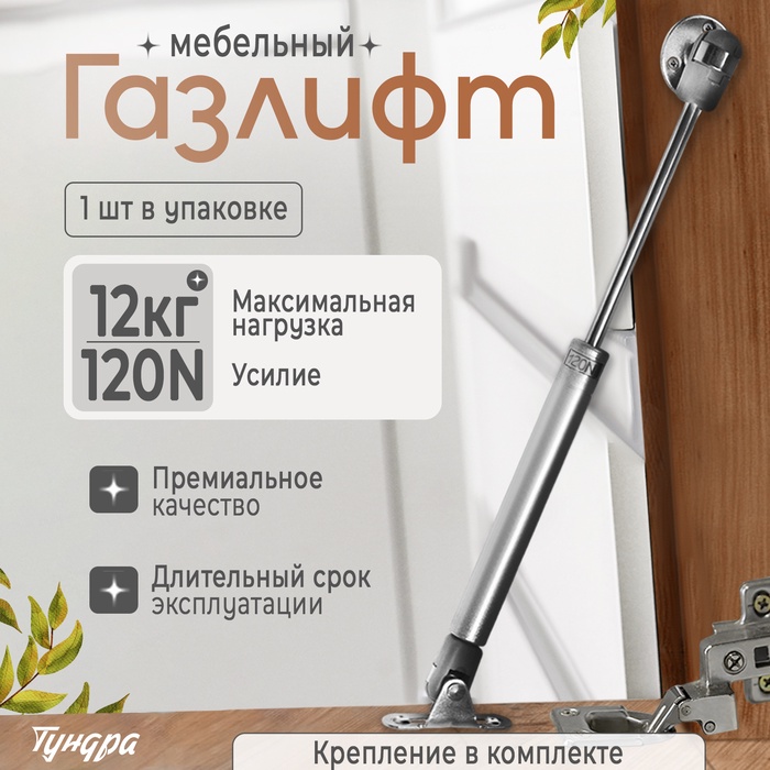 Газовый лифт ТУНДРА GG060GR, 60N, с доводчиком, серый