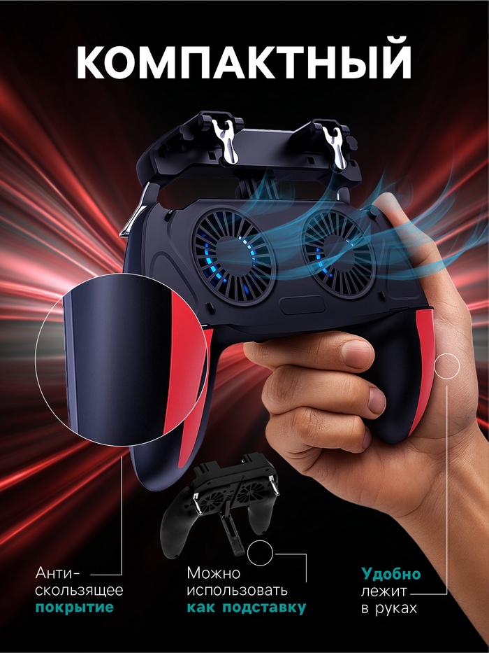 Удобство и функциональность: Геймпад разработан с учетом потребностей мобильных геймеров. Он обеспечивает удобный захват и интуитивно понятное расположение кнопок, что делает игровой процесс более комфортным и приятным. Встроенный аккумулятор и кулер позволяют играть дольше без перерывов на зарядку и охлаждение устройства. Этот геймпад станет отличным выбором для тех, кто ценит качество и удобство в мобильных играх.
