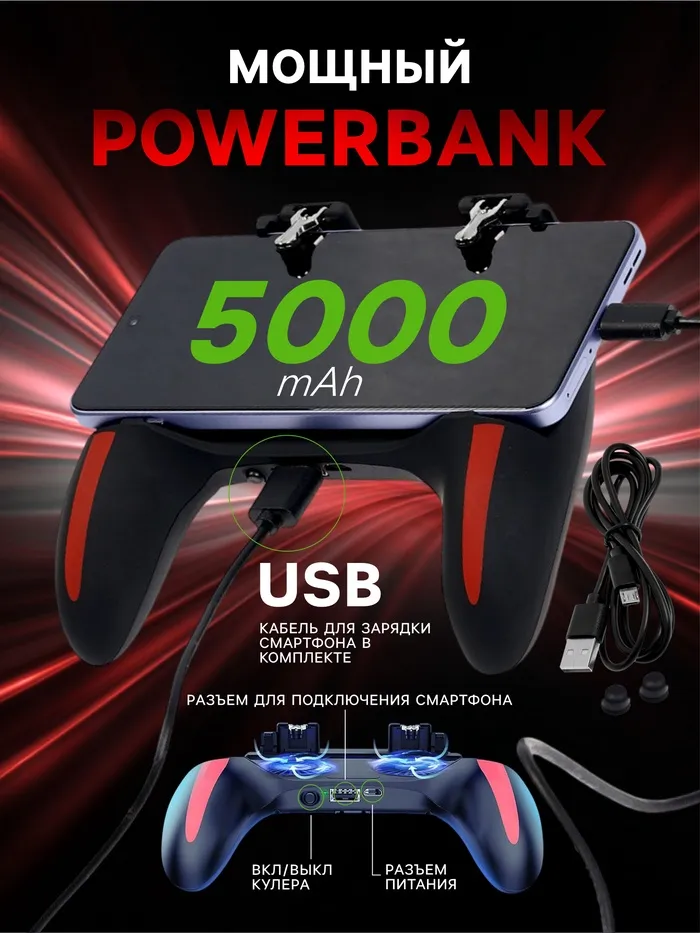 Геймпад для телефона с кулером и аккумулятором 5000 mAh, с подсветкой, 2 режима охлаждения — Характеристики